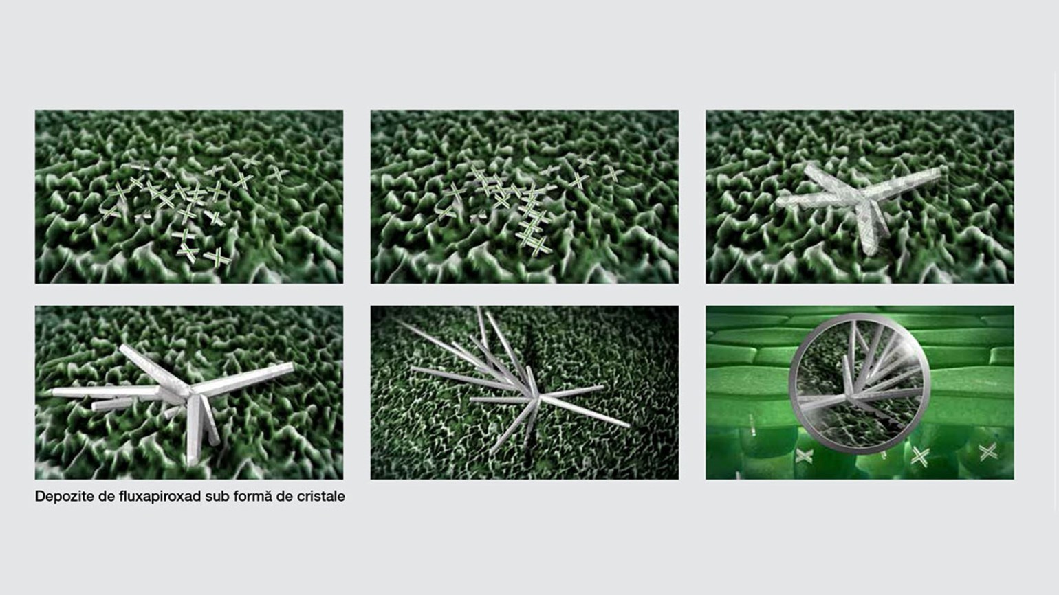 Substanţă activă fluxapiroxad este foarte versatilă şi determină o mobilitate extraordinară a fungicidului în plantă. Aceasta are, de asemenea, abilitatea de a-şi adapta structura spaţială a moleculei în funcţie de mediul din interiorul limbului foliar, astfel că, fiind liposolubilă, penetrează cu uşurinţă membranele celulare, iar buna solubilitate în apă asigură transportul rapid în plantă. Mobilitatea sistemică şi solubilitatea excelentă asigură inclusiv protecţia frunzelor tinere. În plus, faţă de optima absorbţie şi distribuţie în planta atacată, molecula de fluxapiroxad este, de asemenea, mobilă în interiorul ciupercii dăunatoare.